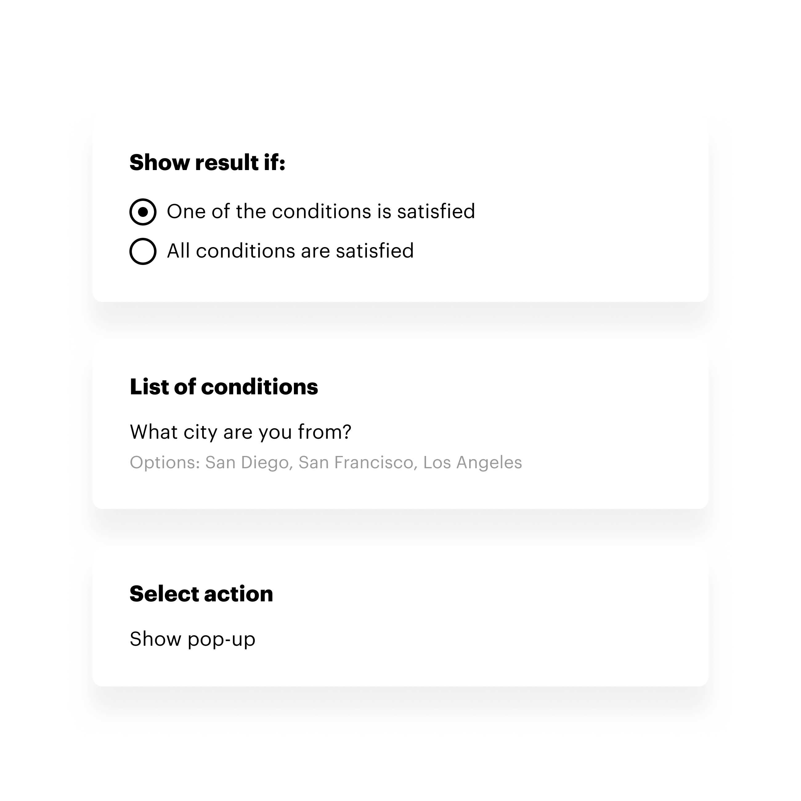 ปรับแต่งแบบทดสอบให้เหมาะกับผู้เข้าชมแต่ละคน: ตั้งคำถามตามคำตอบที่ได้รับ ผู้เข้าชมจะไม่ต้องตอบคำถามที่ไม่เกี่ยวข้อง และคุณจะได้รับข้อมูลที่ละเอียดมากขึ้น